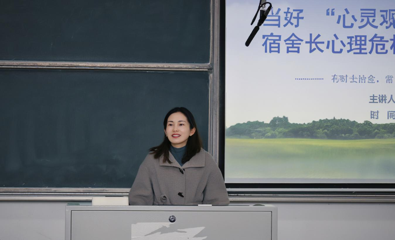 王珊以《当好“心灵观察员”——宿舍长心理危机预防与干预必修课》为题,结合典型案例,详细讲解了抑郁、焦虑、双相情感障碍等常见心理问题的识别要点。她通过“小张沉默寡言”“小赵感觉被跟踪”“小王成绩骤降夜不归宿”等生动情境,指导舍长如何观察舍友的情绪、行为和学业变化,做到早发现、早报告、早干预,切实发挥好“心音使者”的关键作用。