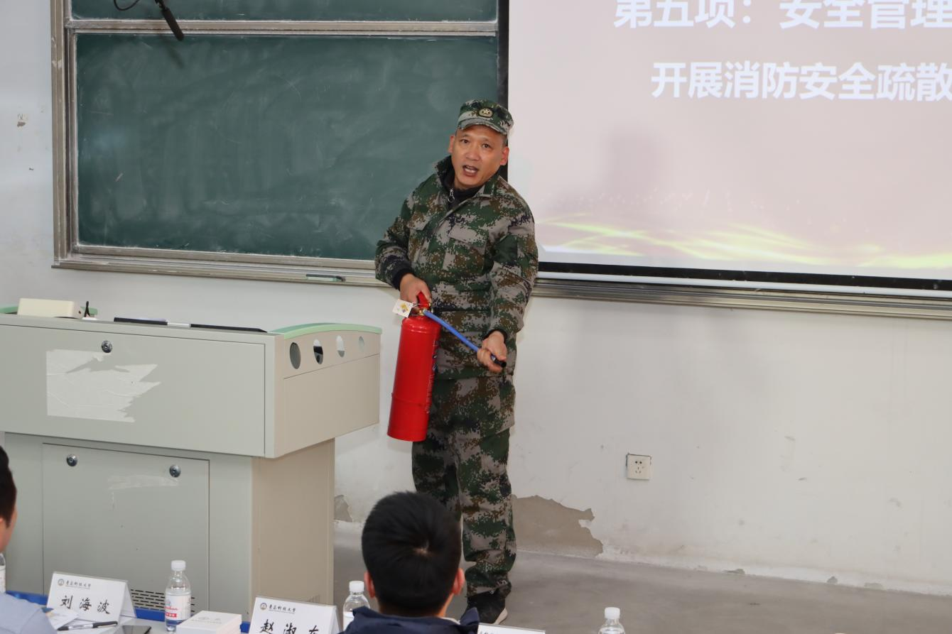 赵淑东组织全体参训老师、舍长开展了消防安全知识培训和防火应急疏散演练。他首先讲解了各类典型消防警示教育案例、火灾预防知识、逃生防护技巧和灭火器材使用方法等,随后指挥全体人员进行了模拟疏散。舍长们通过亲身体验,进一步巩固了消防安全知识,提升了应急处置能力。