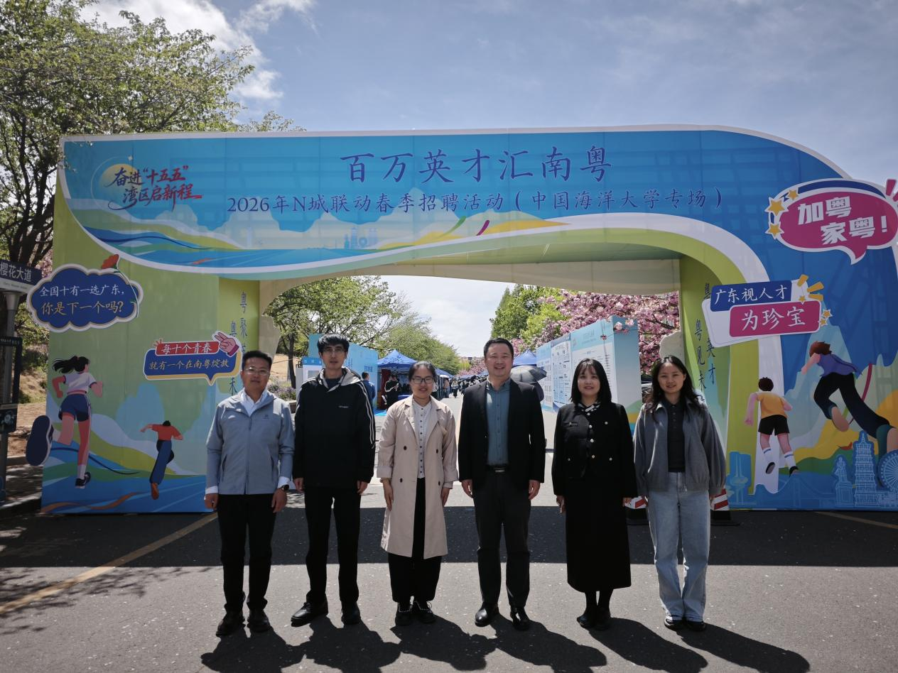 学工队伍到中国海洋大学“百万英才汇南粤”广东省组团招聘会现场,与用人单位沟通交流,进一步摸清岗位需求与行业发展态势,拓宽青科传媒学子就业渠道,助力2026届毕业生高质量充分就业。