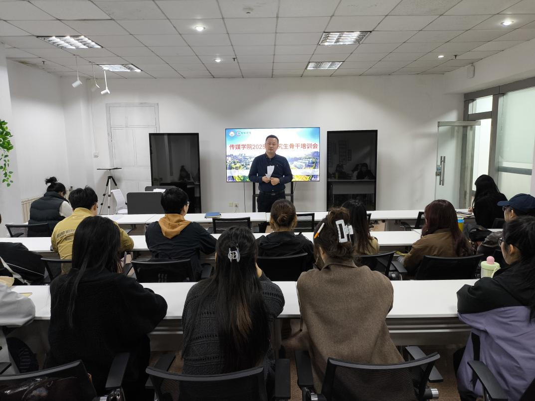 党委副书记兼副院长刘海波、团委副书记兼学工办副主任金莹莹、24级出版专业团支书刘晓阳以及2025级全体研究生班委参加会议。