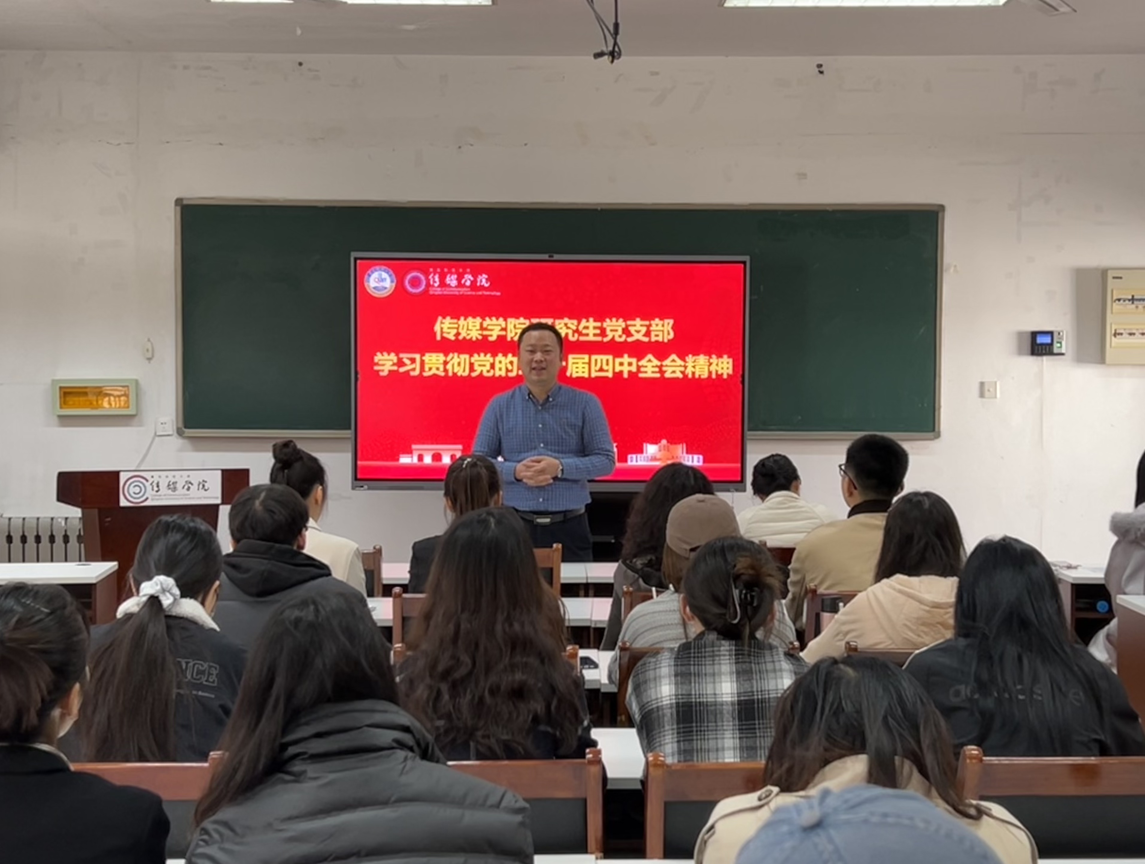 党委副书记兼副院长刘海波作专题辅导。他从历次全会的历史脉络出发,系统阐释了“一中”至“四中”全会的概念内涵与发展逻辑,引导党员深刻理解党的理论创新与实践演进,增强对中国特色社会主义制度发展规律的认识把握。他强调,全体党员要胸怀“国之大者”,在专业学习与社会实践中厚植家国情怀,主动担当作为,将个人理想融入国家社会发展大局。结合传媒学子实际,他鼓励党员同志积极把握就业实习机遇,锤炼专业本领;同时要发挥党员先锋模范作用,带头关心关爱身边同学,在思想引导、学业帮扶、心理支持等方面主动作为,共同营造安全稳定、积极向上的蜜桃直播
