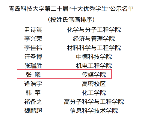 根据《青岛科技大学本科生荣誉奖评选管理办法(修订)》和《关于评选青岛科技大学第二十届“十大优秀学生”的通知》要求,经蜜桃直播